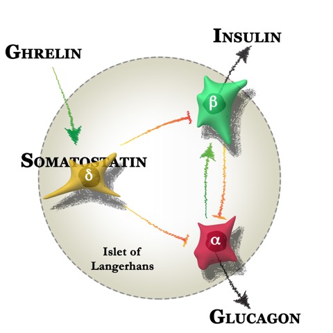 Rorsman P, Huising MO. 2018. The somatostatin-secreting pancreatic δ-cell in health and disease.